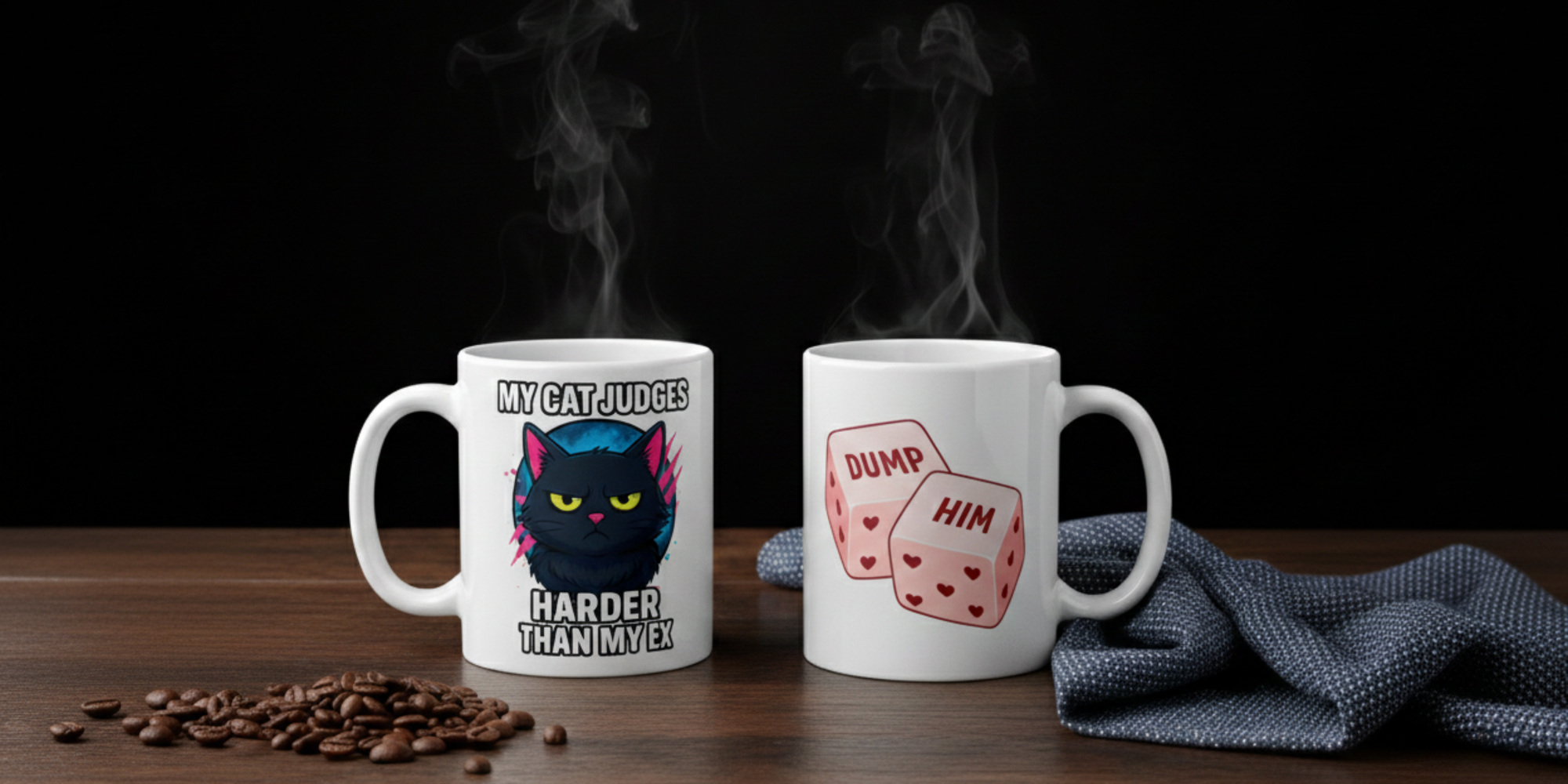 Every mug is designed by me and made to survive daily use, bad moods, and whatever the day throws at you. No fluff. No mass-produced nonsense. Just solid mugs with attitude.
