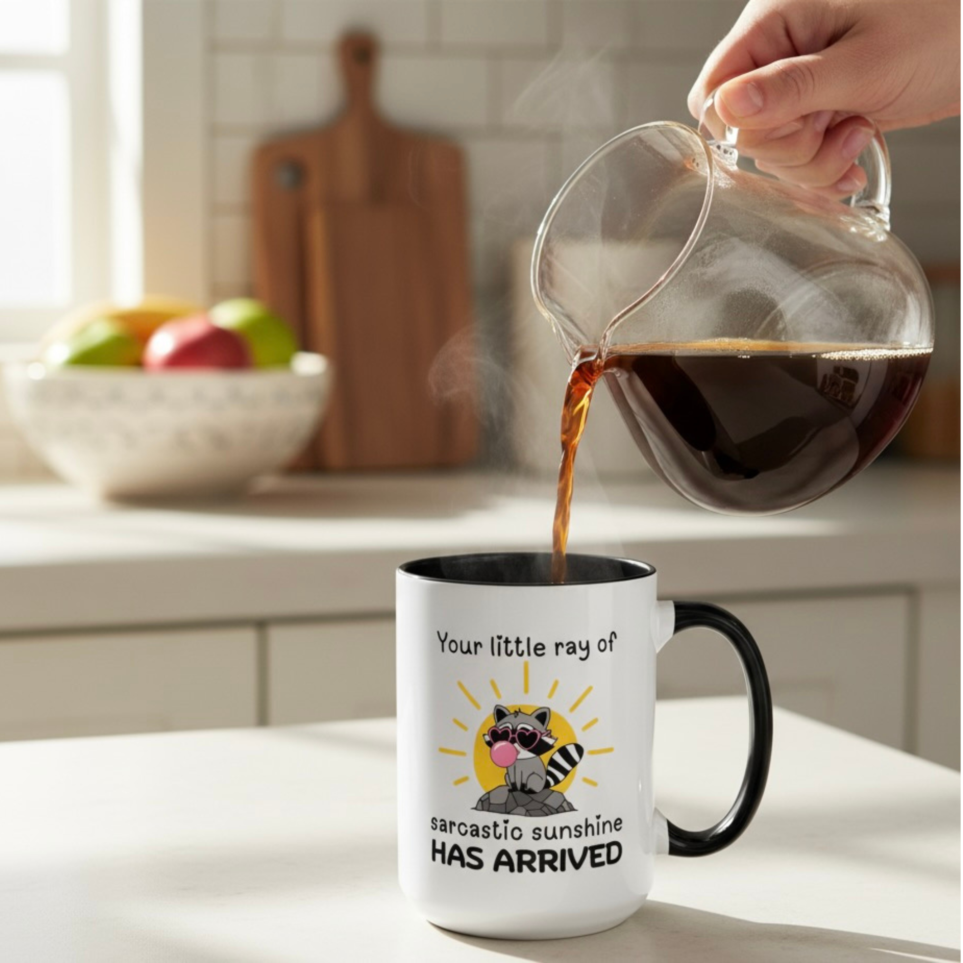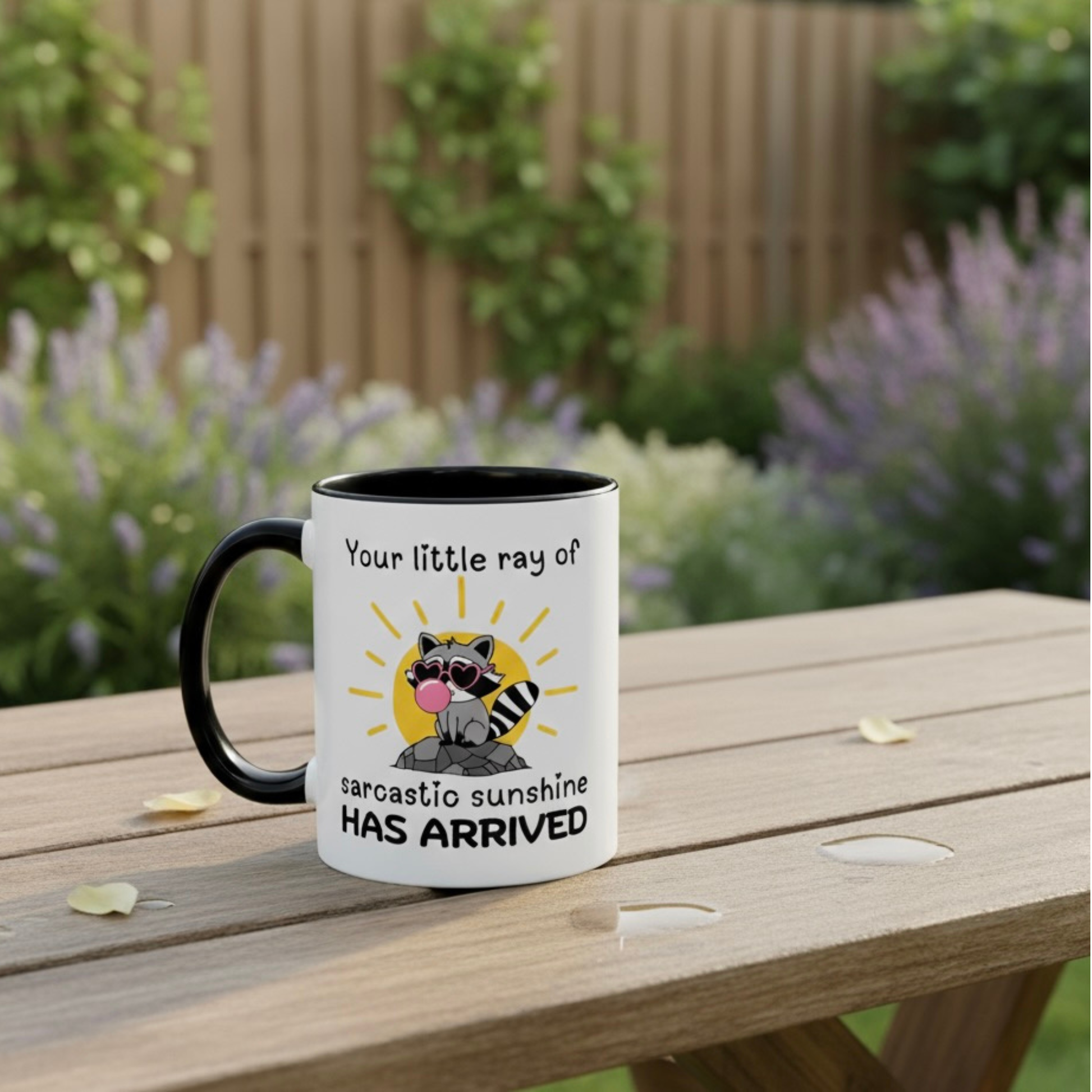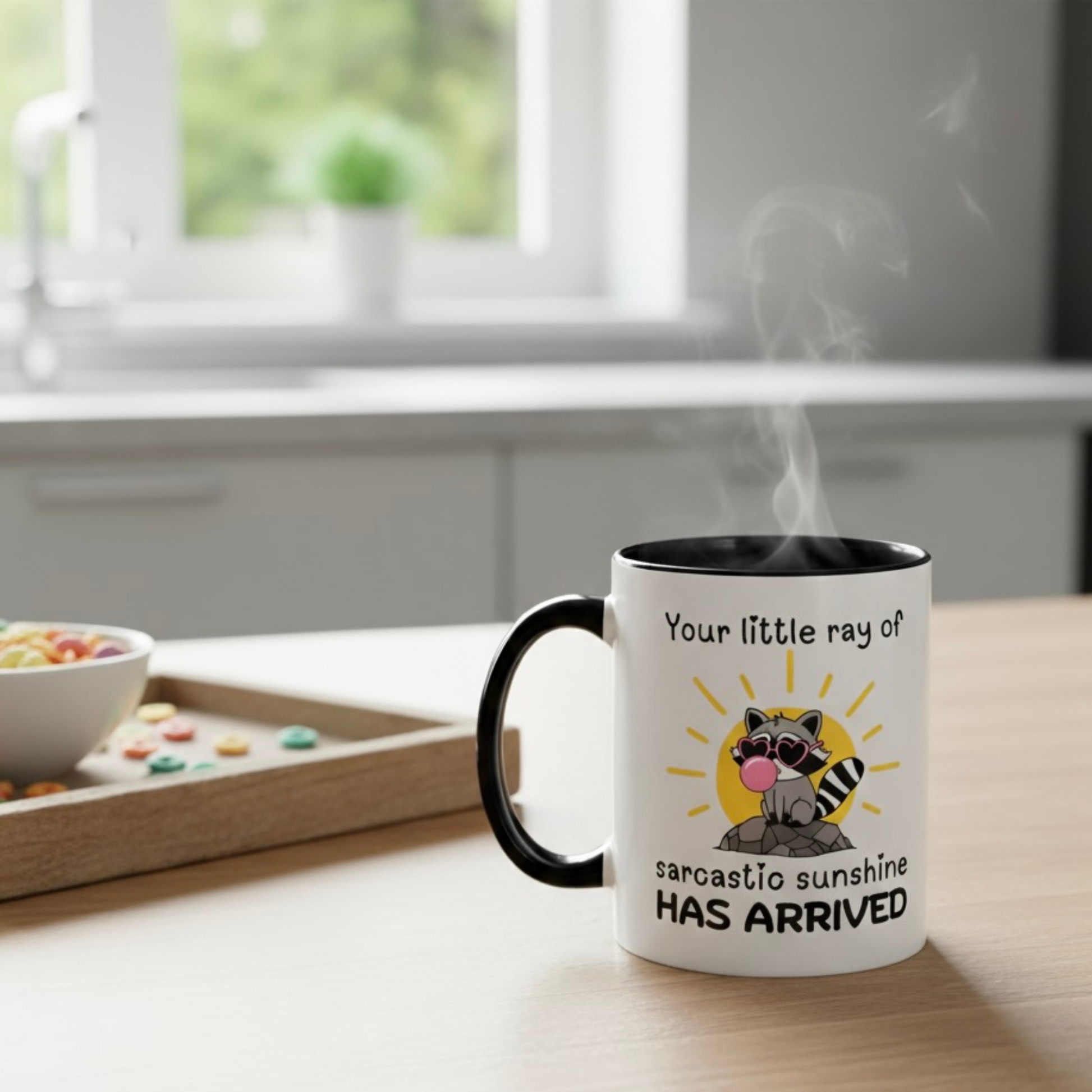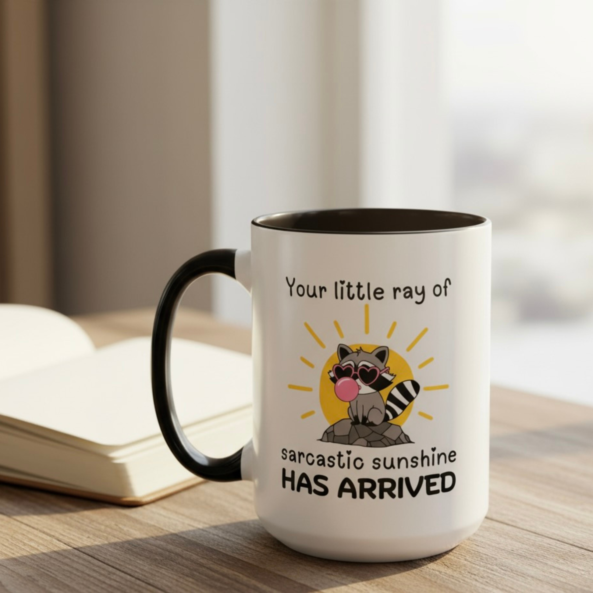Brighten someone’s day… or not. The Your Little Ray of Sarcastic Sunshine Has Arrived mug pairs a mischievous raccoon with just the right dose of sass. Perfect for mornings when you want to radiate “good vibes” with a smirk. Durable ceramic, dishwasher safe, and ready to hold the caffeine that fuels your sarcasm. Because nothing says sunshine like a side of shade.
