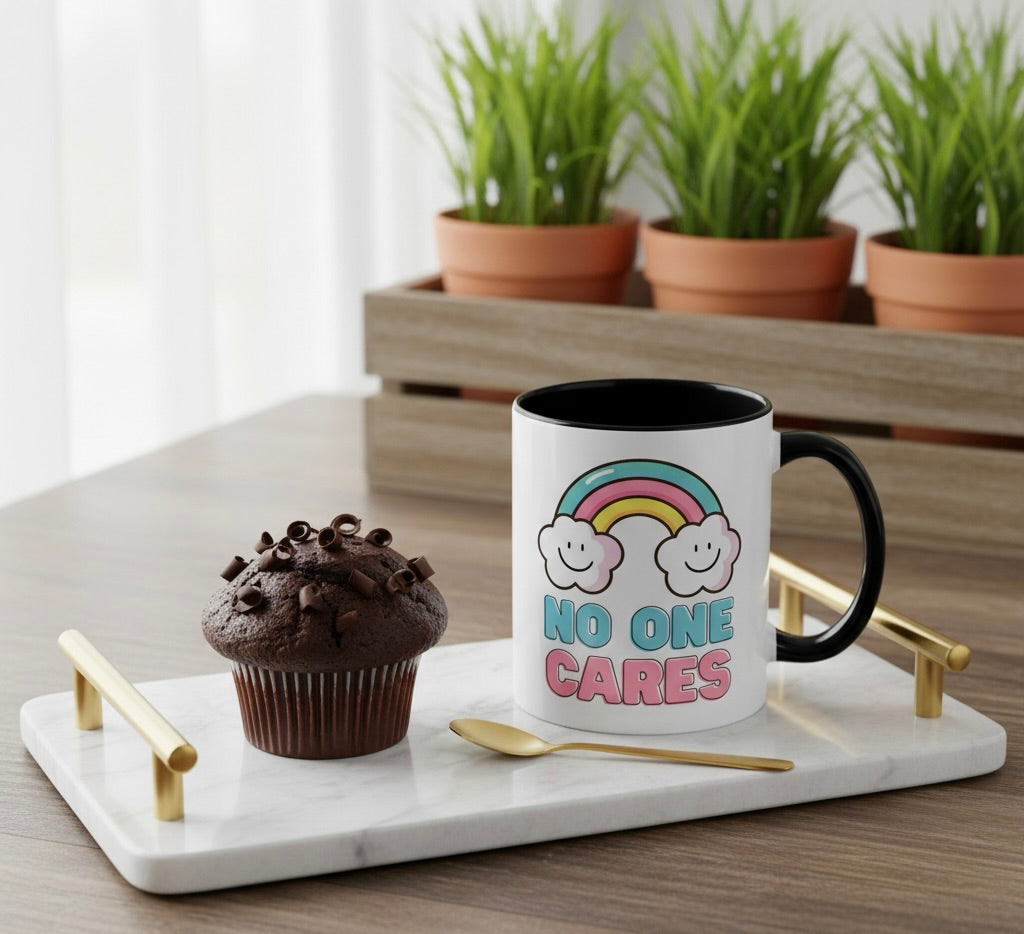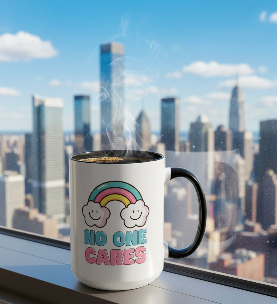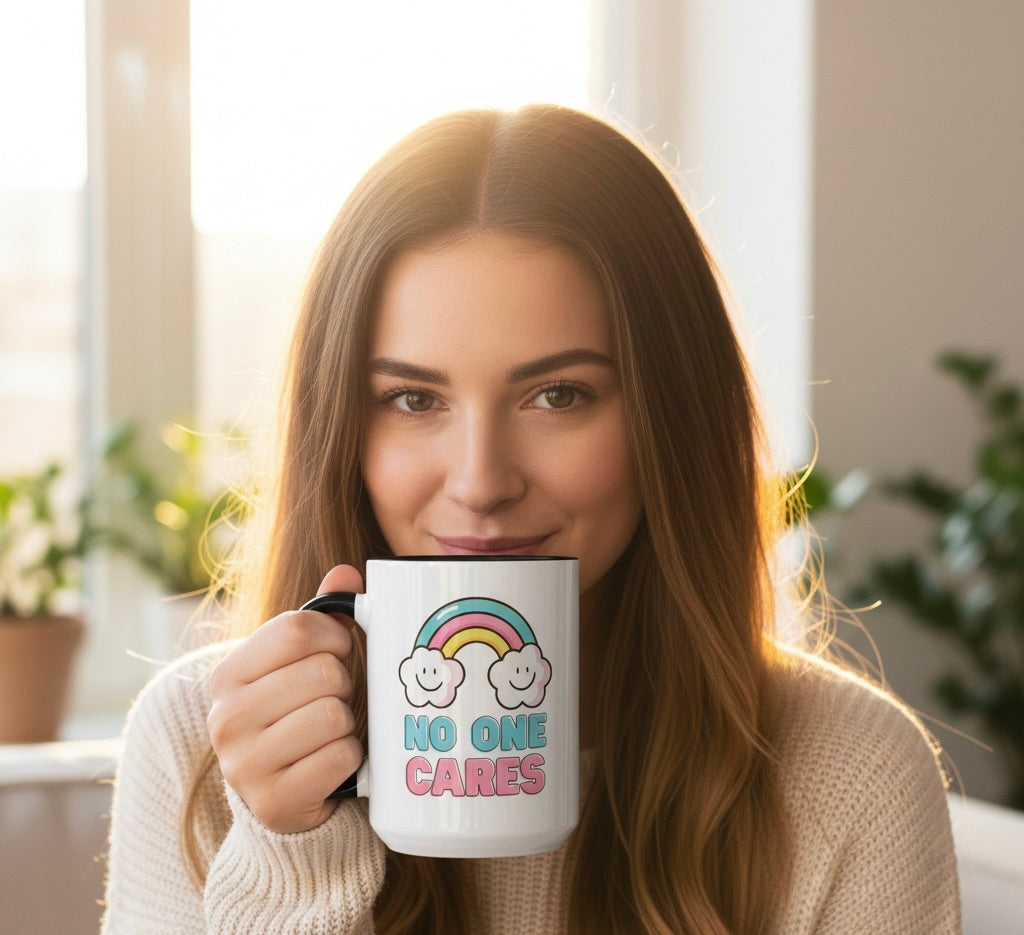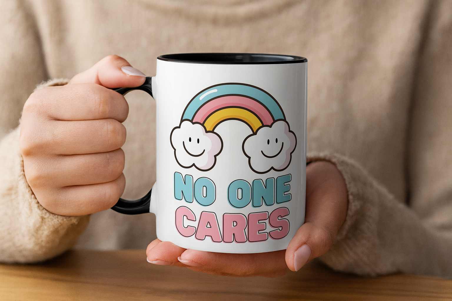 Who says brutal honesty can’t be colorful? This mug pairs a cheerful rainbow with a message that cuts straight to the point: No one cares. Perfect for your morning coffee, late-night tea, or for silently telling Karen from accounting exactly how you feel. Dishwasher and microwave safe, because you’ve got better things to do than handwash sarcasm.