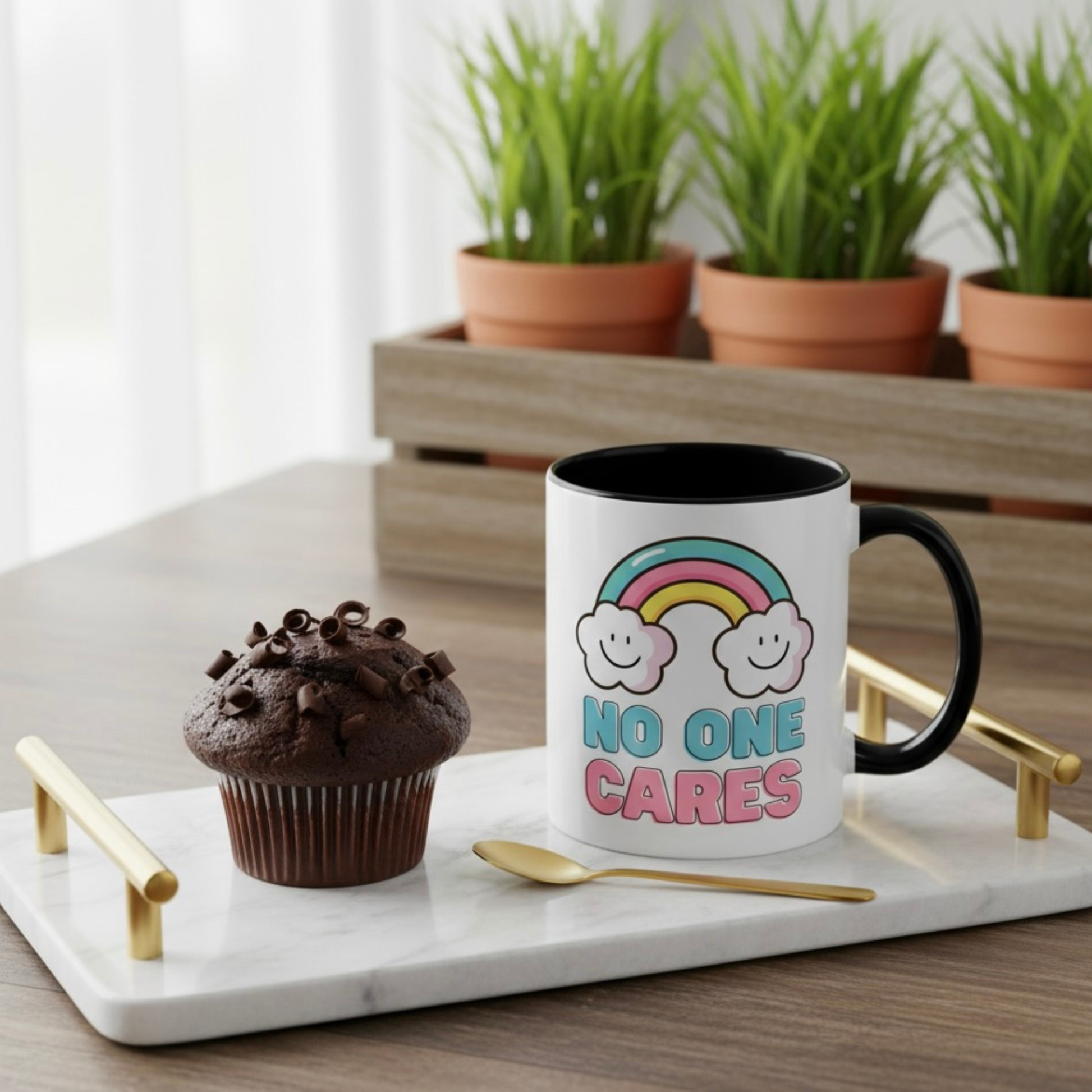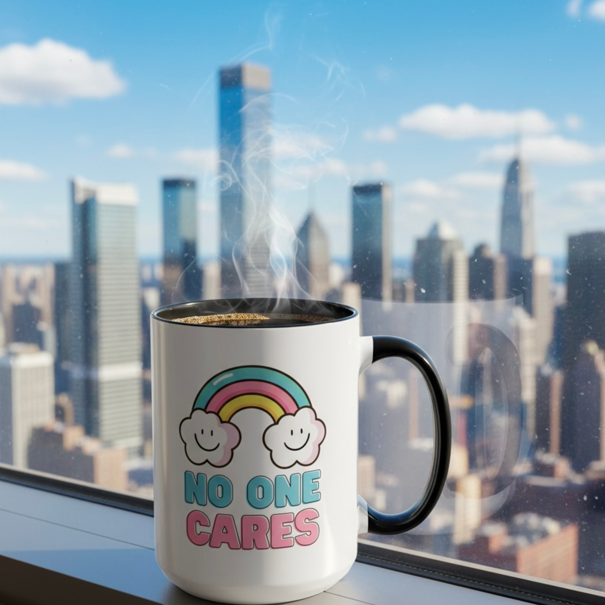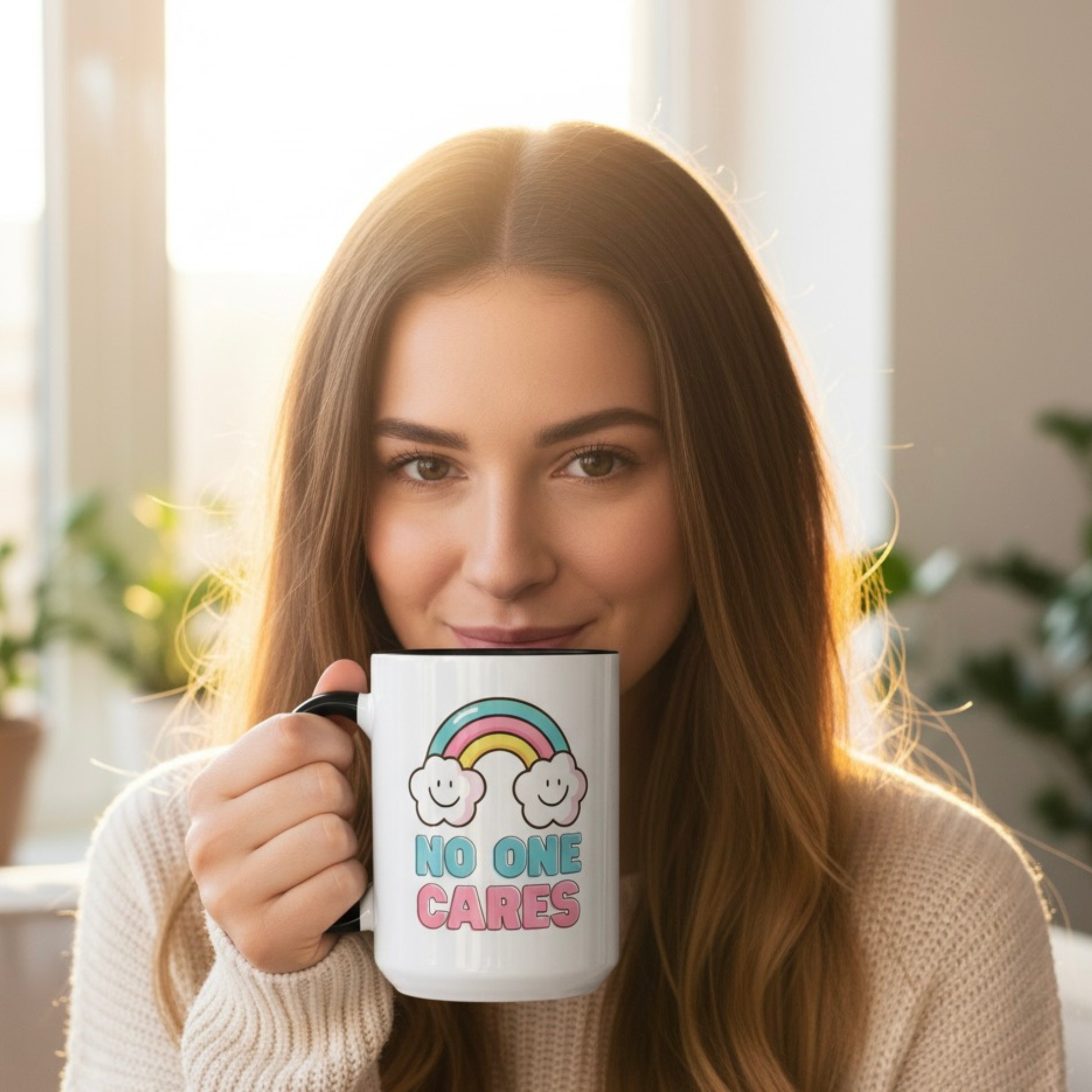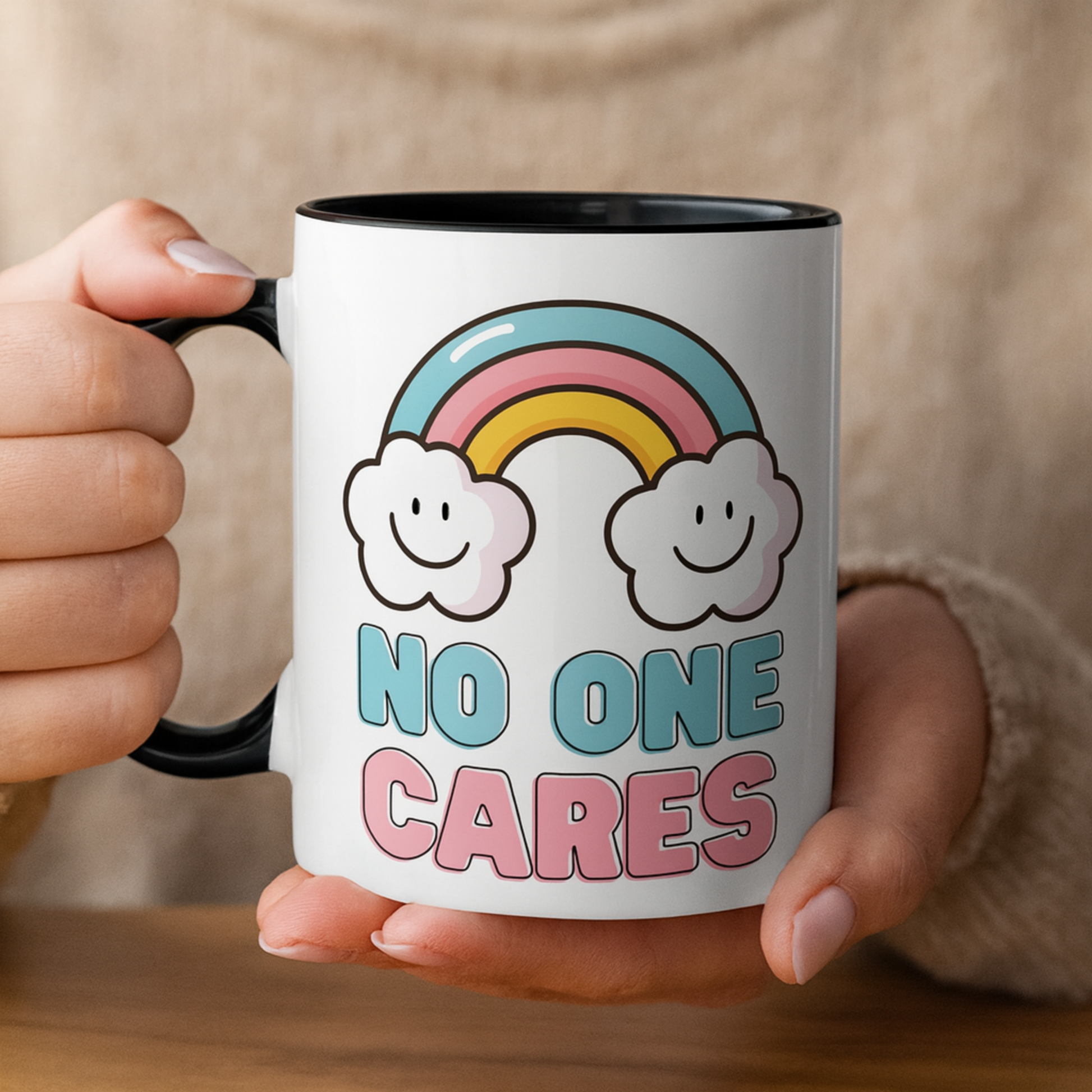 Who says brutal honesty can’t be colorful? This mug pairs a cheerful rainbow with a message that cuts straight to the point: No one cares. Perfect for your morning coffee, late-night tea, or for silently telling Karen from accounting exactly how you feel. Dishwasher and microwave safe, because you’ve got better things to do than handwash sarcasm.