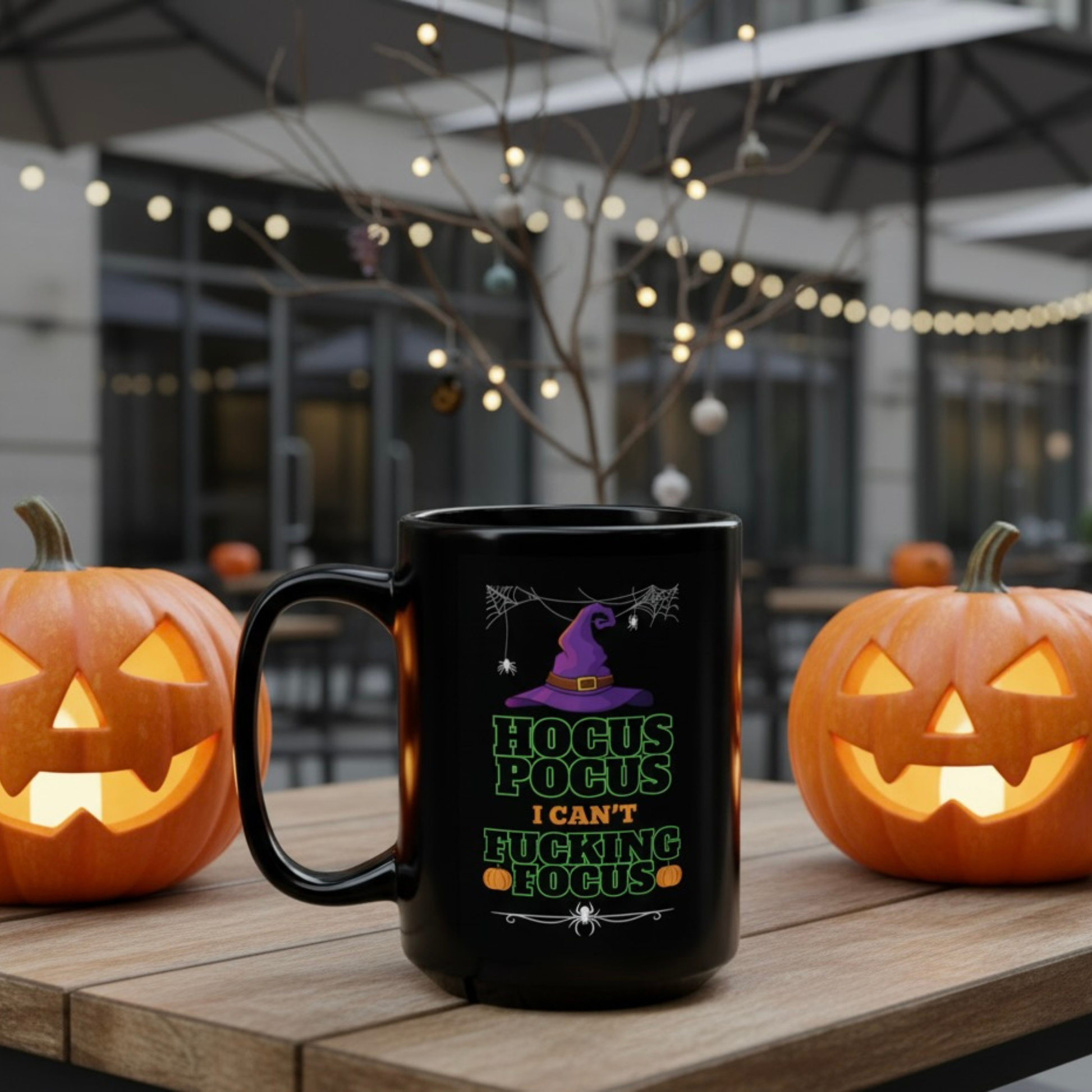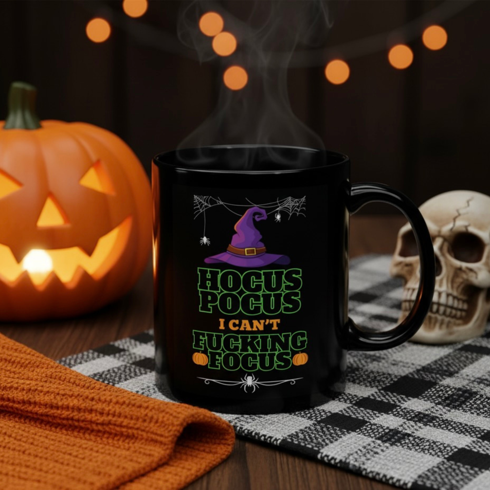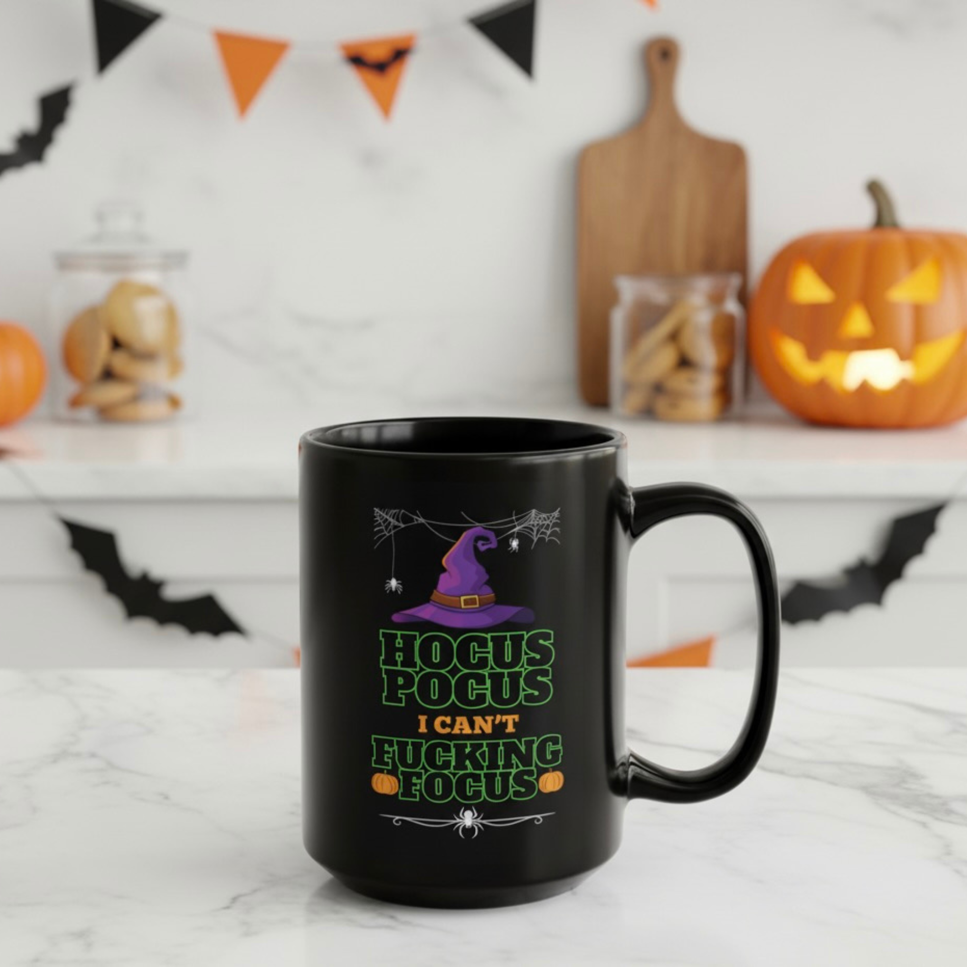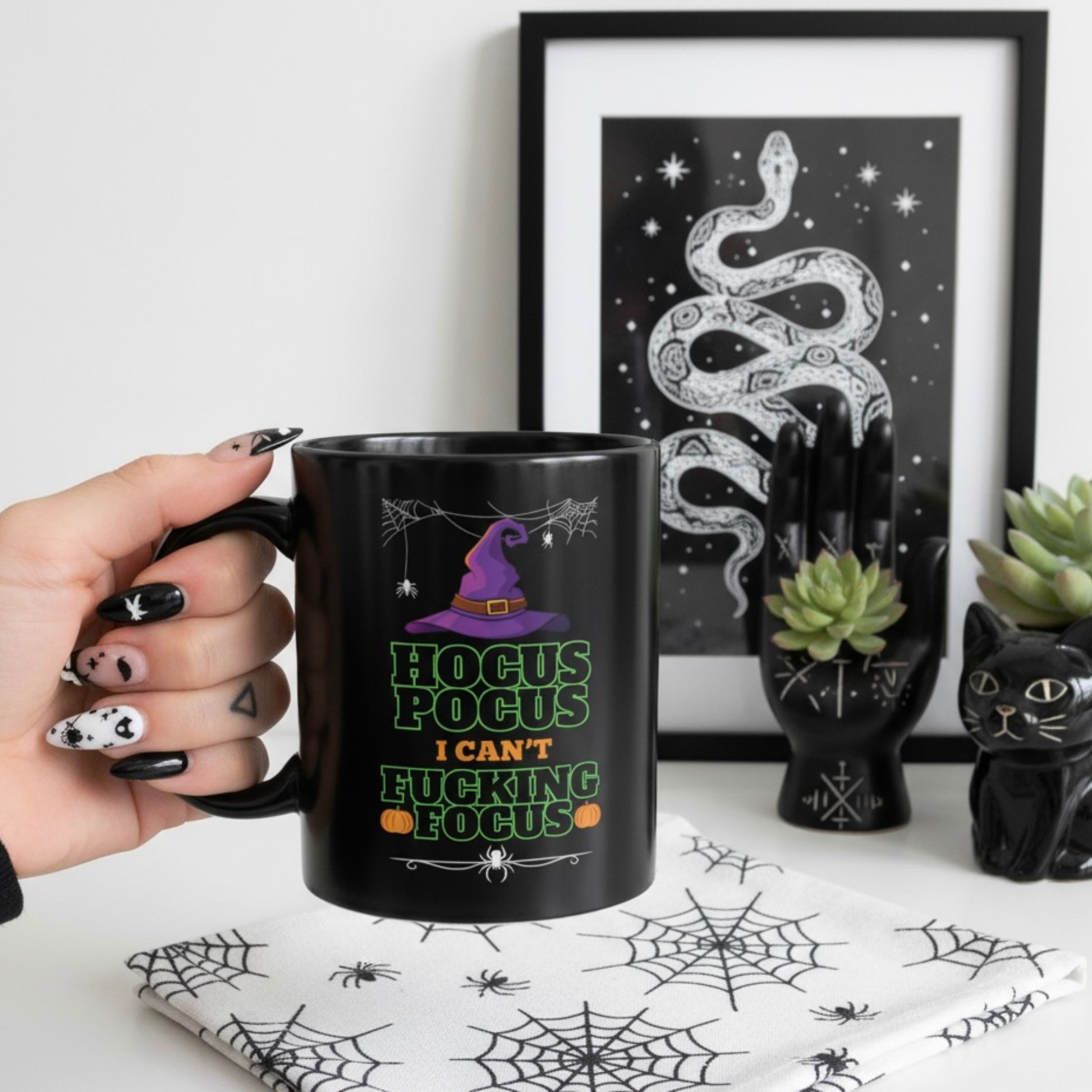 Can't focus? Same. The "Hocus Pocus I Can't Fucking Focus" mug is made for witches, ghouls, and sarcastic souls who run on caffeine and chaos. Featuring a witch's hat, spiderweb accents, and bold neon-inspired lettering, this mug brings spooky sass to your morning brew. Whether you're hexing your inbox, procrastinating spells, or just vibing with your pumpkin spice latte, this mug has the perfect mix of Halloween spririt + sarcasm.